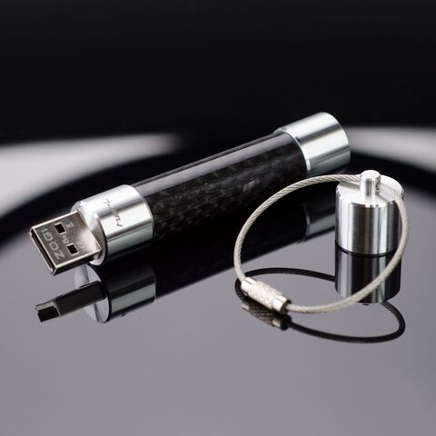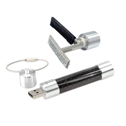 Дизайнерская флэш-карта с интегрированным штампом. Корпус сделан из углеродного волокна и алюминия с брелоком.