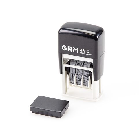 Мини-датер, месяц кириллицей. Прочный пластиковый корпус с автоматическим окрашиванием. Установка даты поворотом колёсиков, сменная подушка синего цвета.