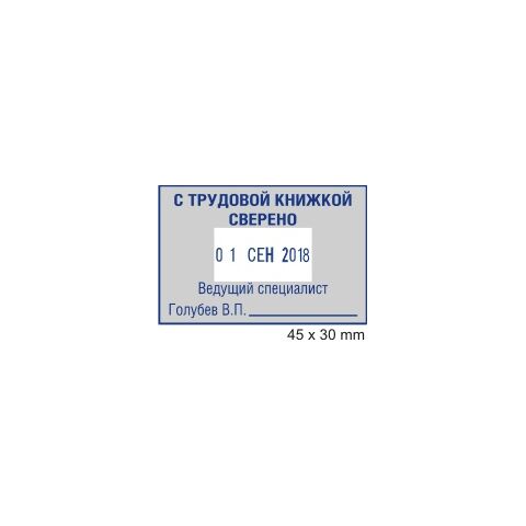 Датер со свободным полем для текста, месяц кириллицей. Прочный пластиковый корпус с автоматическим окрашиванием. Установка даты поворотом колёсиков, сменная подушка синего цвета. Дата в центре, вокруг свободное поле под клише.