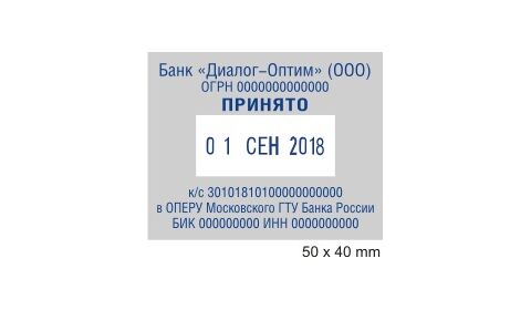 Датер со свободным полем для текста, месяц кириллицей. Прочный пластиковый корпус с автоматическим окрашиванием. Установка даты поворотом колёсиков, сменная подушка синего цвета. Дата в центре, вокруг свободное поле под клише.