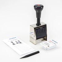 Автоматический нумератор с металлическим корпусом позволяет осуществлять нумерацию документов с выбранной периодичностью. Ленты с металлическими цифрами можно подкручивать с помощью приложенного стилуса.