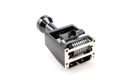 Для обнуления или смены первой цифры нужно вручную повернуть первое колесо, используя пластиковый стилус. У профессиональных нумераторов Reiner B6 автоматически вращаются только последние пять колёс.