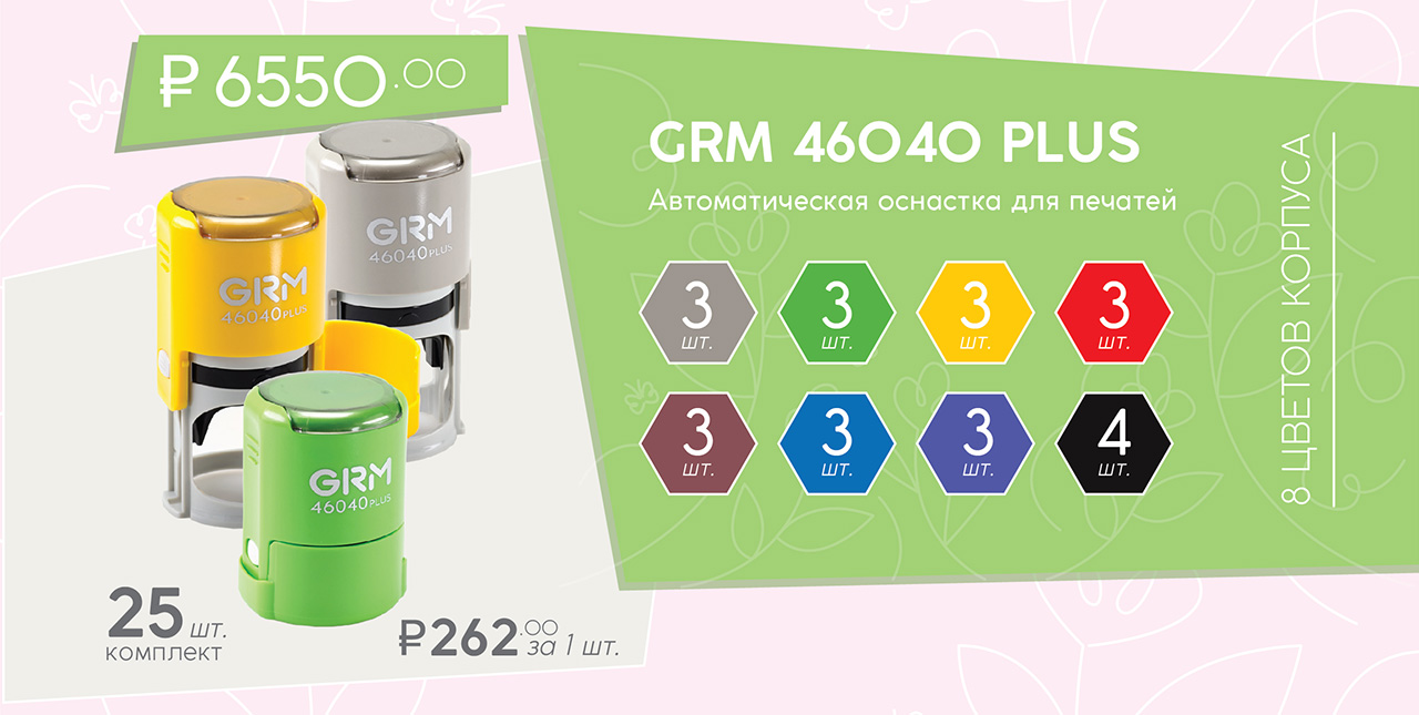 GRM 46040 PLUS MIX - Комплект автоматической оснастки для печатей, диаметр 40 мм.