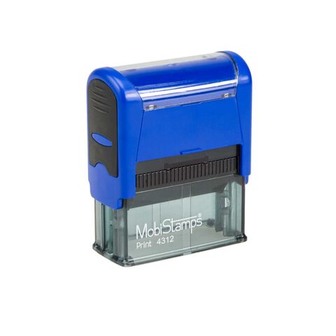 Автоматическая оснастка для штампа Mobistamps 4312 с корпусом синего цвета, без кнопок-фиксаторов.