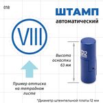 Штамп Римская цифра VIII с синим оттиском (Тип 18), корпус синий GRM R12 Office диам. 12 мм