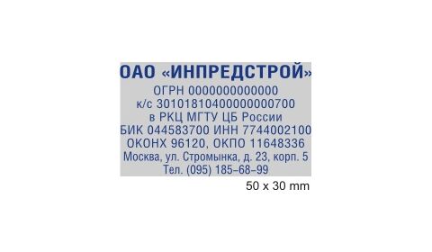Прочный пластиковый корпус с автоматическим окрашиванием. Окно в нижней части корпуса для более удобного позиционирования оттиска, сменная подушка синего цвета. Текстовая пластина прямоугольной формы.