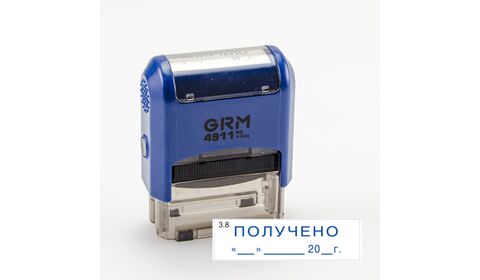GRM 4911_P3 "Получено с датой" 3.8" размер оттиска: 38x14 автоматическая оснастка: GRM 4911 P3 цвет корпуса: синий