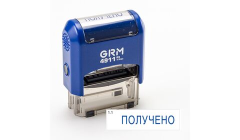 GRM 4911_P3 стандартный штамп «1.1 Получено» размер оттиска: 38x14 автоматическая оснастка: GRM 4911 P3 цвет корпуса: синий