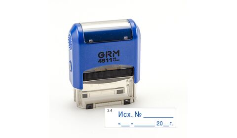 GRM 4911_P3 стандартный штамп «3.4 Исх. N ___ (дата)» размер оттиска: 38x14 автоматическая оснастка: GRM 4911 P3 цвет корпуса: синий