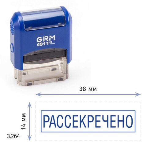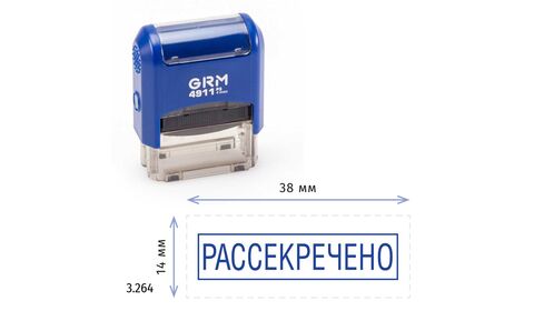Стандартный штамп с текстом «Рассекречено» и рамкой, на оснастке с автоматическим окрашиванием GRM 4911 P3.