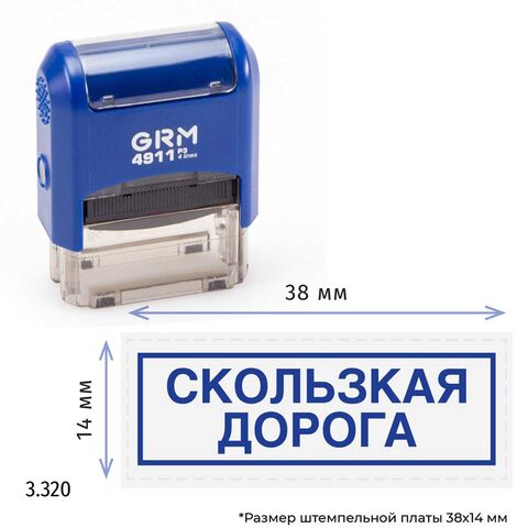 Стандартный штамп с текстом «Скользкая дорога» и рамкой, на оснастке с автоматическим окрашиванием GRM 4911 P3.