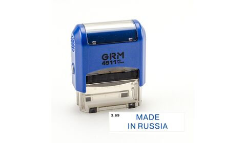 GRM 4911_P3 стандартный штамп «3.69 Made in Russia» размер оттиска: 38x14 автоматическая оснастка: GRM 4911 P3 цвет корпуса: синий