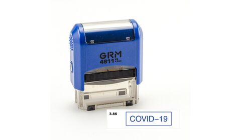 GRM 4911_P3 стандартный штамп «3.86 COVID-19 (рамка)» размер оттиска: 38x14 мм автоматическая оснастка:GRM 4911 P3 цвет корпуса: синий цвет...
