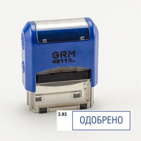 GRM 4911_P3 стандартный штамп «3.93 Одобрено (рамка)» размер оттиска: 38x14 мм автоматическая оснастка:GRM 4911 P3 цвет корпуса: синий цвет...