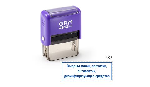 GRM 4912 plus стандартный штамп «4.07 Выданы маски, перчатки, антисептик (рамка)», 47х18мм