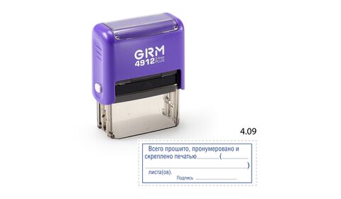 GRM 4912 plus стандартный штамп «4.09 Всего прошито, пронумеровано и скреплено печатью (рамка)», 47х18мм