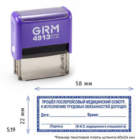 GRM 4913 Plus стандартный штамп «Прошел послерейсовый медицинский осмотр»