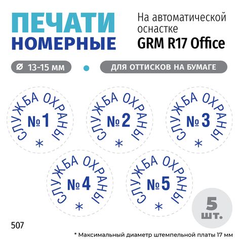 Комплект Служба охраны 5 автом. печатей (корпус синий) д.17 мм , GRM R17 Office, Тип 507