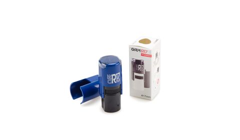 Надежная оснастка GRM с автоматическим окрашиванием с крышкой для защиты штампа от мусора. В нижней части крышки есть место для крепления на брелок.