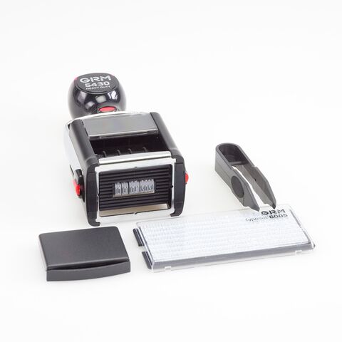 Самонаборный датер на металлической автоматической оснастке GRM 5430 Heavy Duty Dater DIY 2 Lines помимо меняющейся даты оснащён рифлёной пластиной для набора текста над датой и/или под ней.