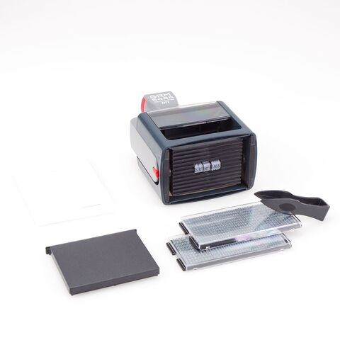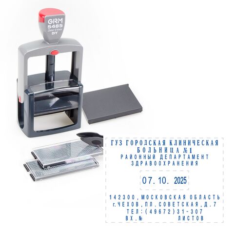 Cамонаборные датеры GRM 5485 Dater HUMMER комплектуются двумя кассами шрифта для набора штампов и датеров: UNI-SET Big + UNI-SET Small. В них содержится достаточное количество букв русского и латинского алфавита, цифры и знаки препинания, чтобы набрать штамп любой сложности.