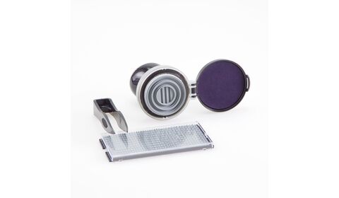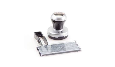 Самонаборная печать на пластиковой ручной оснастке GRM HR40 c рифлёной пластиной для самостоятельного изготовления печати. Штемпельная подушка встроена в крышку оснастки. Диаметр печати 40 мм. В комплекте одна касса символов ECONOM + пинцет. Крепление символов "одноножечное".