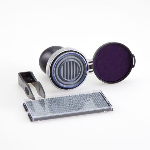 Самонаборная печать на пластиковой ручной оснастке GRM HR45 c рифлёной пластиной для самостоятельного изготовления печати. Штемпельная подушка встроена в крышку оснастки. Диаметр печати 45 мм. В комплекте одна касса символов ECONOM + пинцет. Крепление символов "одноножечное".