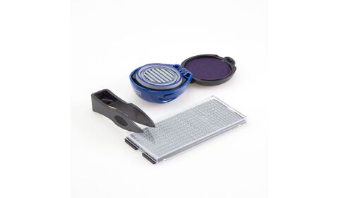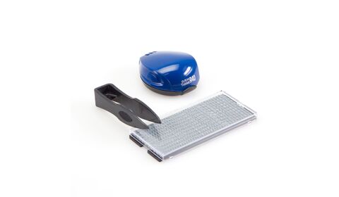 Самонаборная печать на пластиковой ручной оснастке GRM R40 Tablet c рифлёной пластиной для самостоятельного изготовления печати. Штемпельная подушка встроена в крышку оснастки. Диаметр печати 40 мм. В комплекте одна касса символов ECONOM + пинцет. Крепление символов "одноножечное".