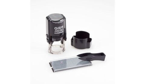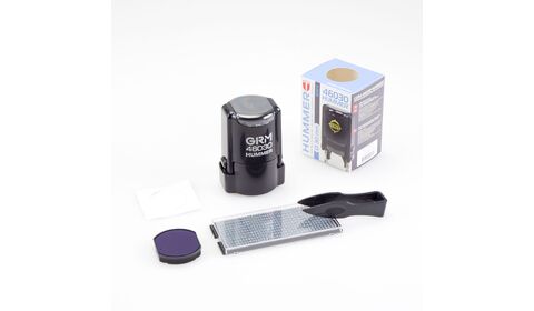 Автоматическая самонаборная печать на пластиковой оснастке GRM 46030 HUMMER оснащена рифлёной пластиной для самостоятельного изготовления печатей малых диаметров. Диаметр печати 30 мм. В комплекте одна касса символов ECONOM + пинцет. Крепление символов "одноножечное".