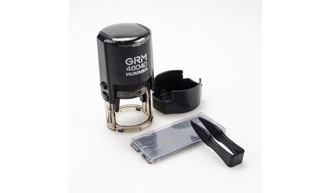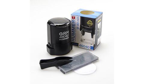 Автоматическая самонаборная печать на пластиковой оснастке GRM 46040 HUMMER оснащена рифлёной пластиной для самостоятельного изготовления печати. Диаметр печати 40 мм. В комплекте одна касса символов ECONOM + пинцет. Крепление символов "одноножечное".
