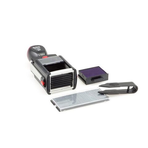 Прочный металлический корпус с автоматическим окрашиванием. Прямоугольная рифленая пластина с горизонтальными строками. В комплект входит пинцет, кассы символов UNI-SET Big и UNI-SET Small, двухсторонняя сменная подушка синего цвета. Используется в бухгалтерии, в банке для оформления платежных поручений.