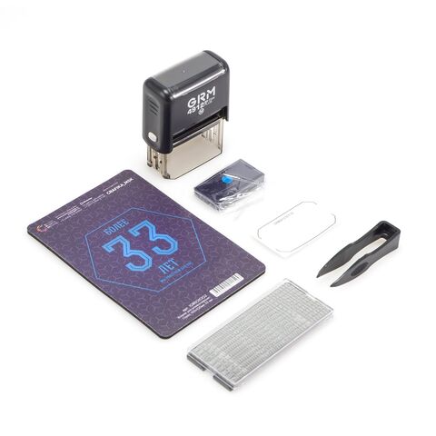 Самонаборный штамп на пластиковой автоматической оснастке GRM 4912 Plus оснащён рифлёной пластиной для набора текста. В комплект входит касса латинского алфавита + пинцет. Крепление символов "одна ножка".