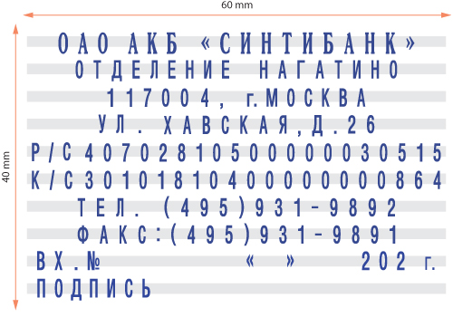 Внимание! Набор информации на текстовую плату самонаборного штампа осуществляется справа налево в зеркальном отражении.