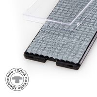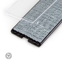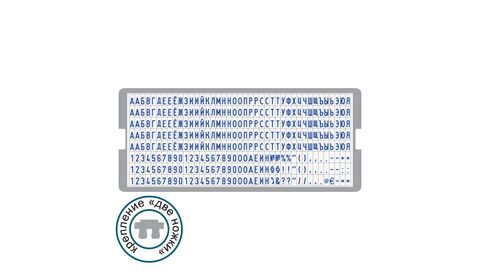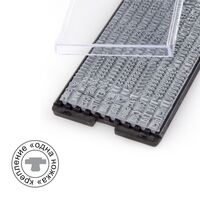Касса наборного шрифта 6003 содержит буквы русского алфавита, цифры и знаки препинания. Знаки кассы крепятся на рифлёную плату самонаборного штампа или датера с помощью двух ножек. Такой способ крепления отличается особой надёжностью закрепления букв в штампе. Для набора используйте специальный пластиковый пинцет.