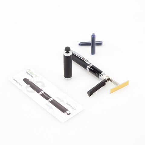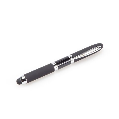 Ручка со штампом HERI 80321, перьевая со стилусом, в футляре, корпус с чёрными матовыми прорезиненными деталями. Иридиевое перо Schmidt Iridium Point. Производство немецкой компании Heri Rigoni (Германия).