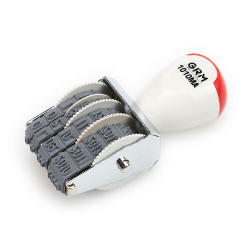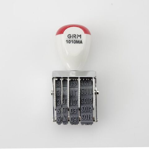 Ленточный датер - GRM 1010МА GRM 1010МА датер ручной, ленточный, месяц цифрами. Кол-во лент (разрядов) : 4 разряда Высота шрифта : 4 мм...