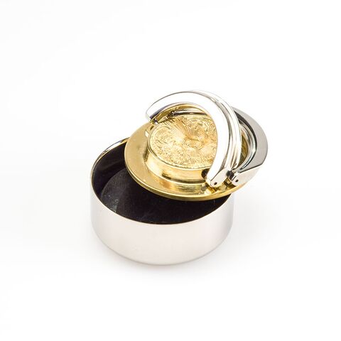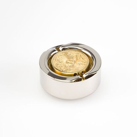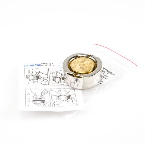 OL-21 040 T "ТЕХНО-ПАТРИОТ" - Металлическая ручная оснастка, д. 40 мм, (с подушкой), с золотым казахским гербом