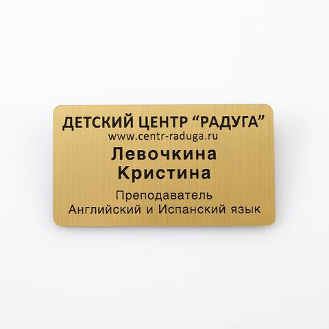 Нагрудный бейдж из двухслойного пластика, с булавкой для крепления.