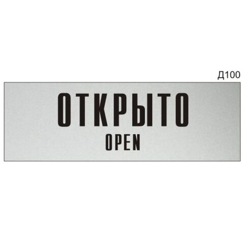 «Открыто Open» - Информационная табличка на дверь, прямоугольная, Д100