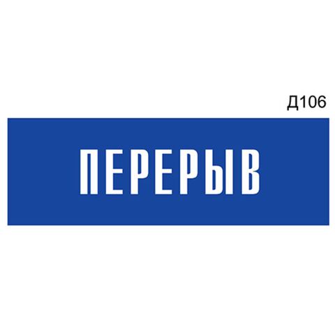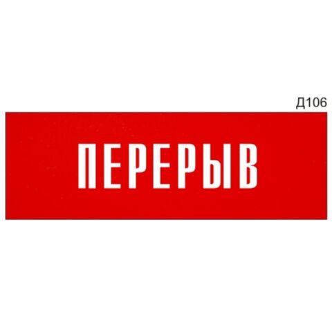 «Перерыв» - Информационная табличка на дверь, прямоугольная, Д106