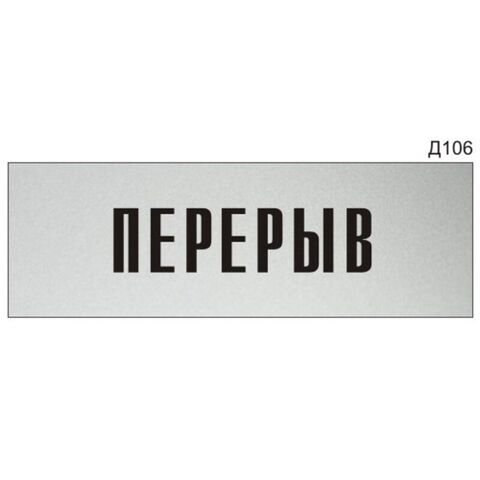 «Перерыв» - Информационная табличка на дверь, прямоугольная, Д106