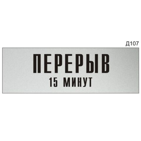 «Перерыв 15 минут» - Информационная табличка на дверь, прямоугольная, Д107