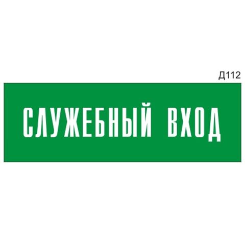 «Служебный вход» - Информационная табличка на дверь, прямоугольная, Д112