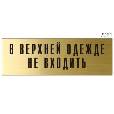 «В верхней одежде не входить» - Информационная табличка на дверь, прямоугольная, Д121