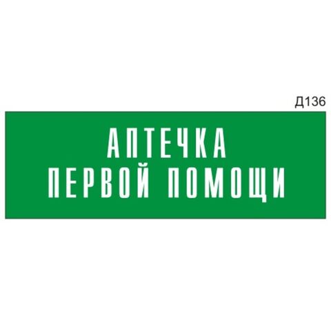 «Аптечка первой помощи» - Информационная табличка на дверь, прямоугольная, Д136