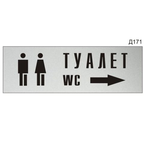 «Туалет, стрелка вправо» - Информационная табличка на дверь, прямоугольная, Д171