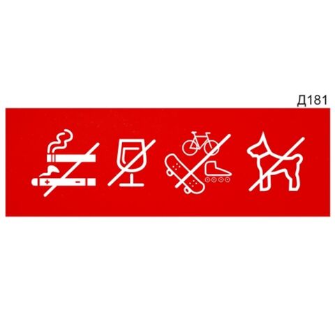 «Не входить с собаками, роликами, велосипедами, скейтами, не курить, не распивать спиртные напитки» - Информационная табличка на дверь, прямоугольная, Д181