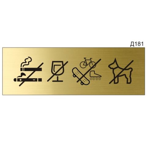 «Не входить с собаками, роликами, велосипедами, скейтами, не курить, не распивать спиртные напитки» - Информационная табличка на дверь, прямоугольная, Д181