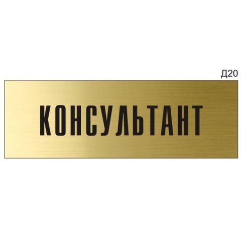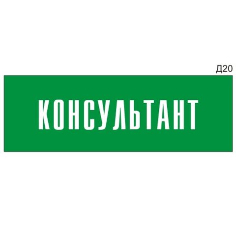 «Консультант» - Информационная табличка на дверь, прямоугольная, Д20