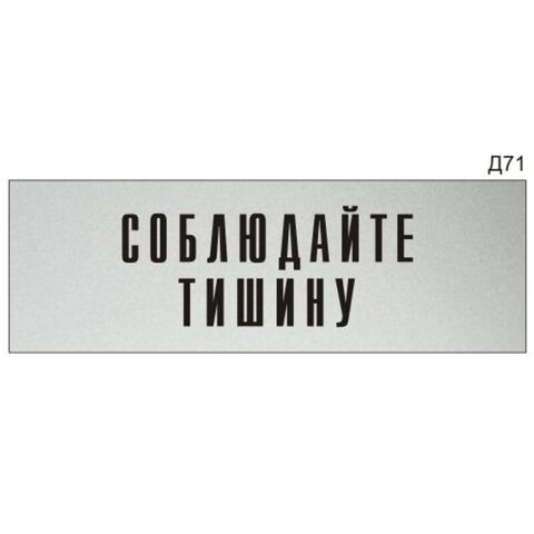 «Соблюдайте тишину» - Информационная табличка на дверь, прямоугольная, Д71